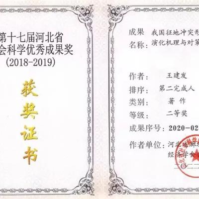 2020年9月21日,第十七屆河北省社會科學優秀成果獎獲獎名單由河北省社會科學成果評獎委員會正式公布。我綠建生態環境集團有限公司聯合河北省廊坊市應用經濟學會完成的《我國征地沖突形成動因、演化機理與對策研究》榮獲河北省社會科學優秀成果獎二等獎。