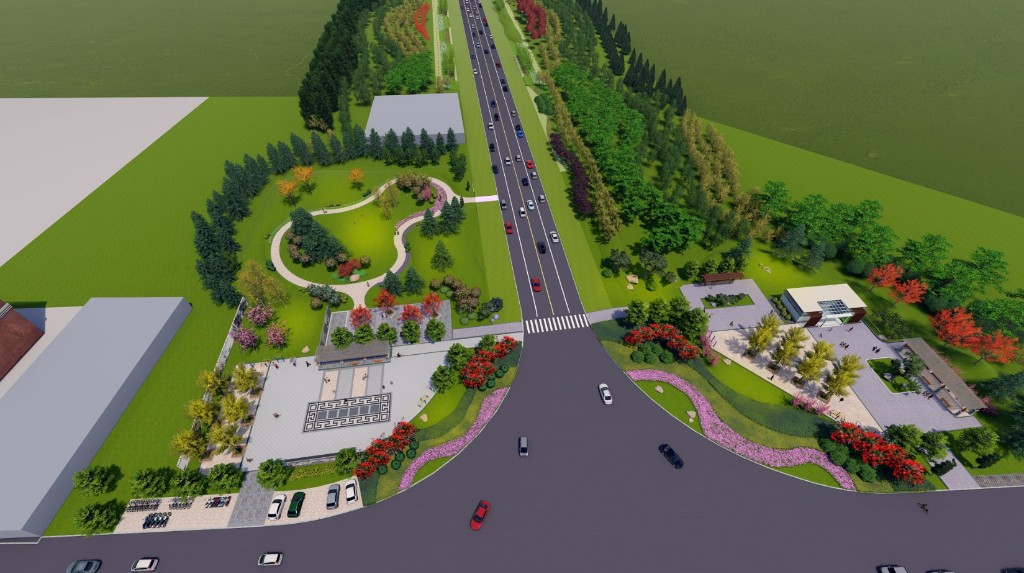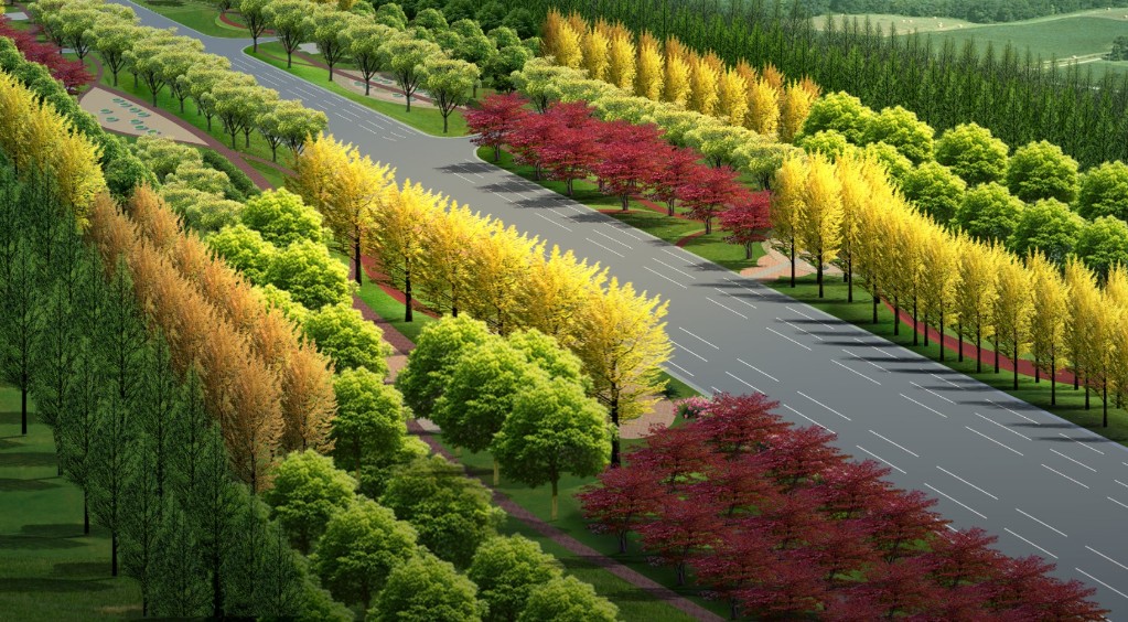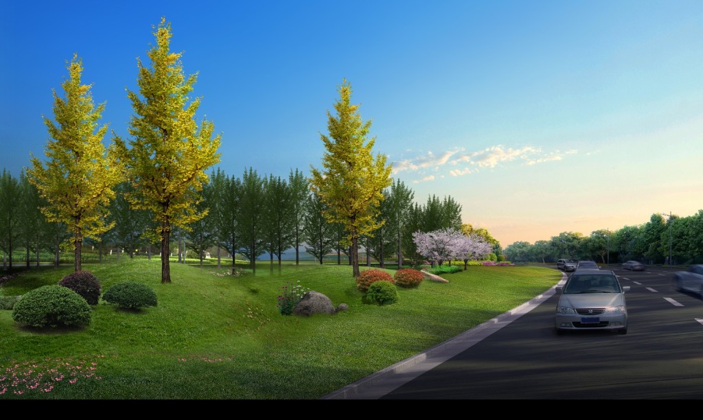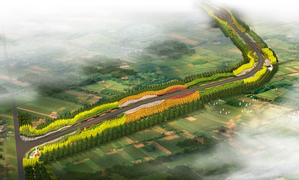 曹操高陵迎賓大道景觀綠化項目,全長2.9公里,道路兩側由內往外依次分別是10米寬花灌木景觀林帶和50米寬國儲林綠化,在高陵迎賓道與301省道交叉口兩側和中間通往漳河的道路交叉口分別設置了景觀節點,供鄰近民眾停留休閑健身活動,完善停留功能和通行觀賞效果表達。