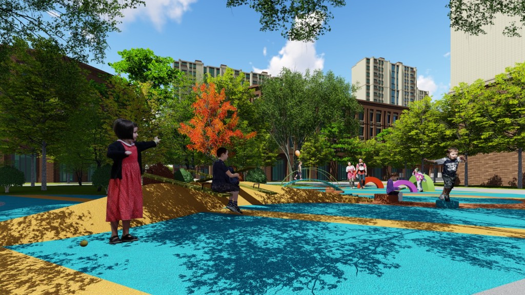 與此同時小區景觀中景觀風格整體以簡潔明快為主,注重鄉土植物的應用;"軍功章"、"五星"采用軍隊元素進行提煉作為案名;小品與偉人詩詞,歷史名人結合進行演繹;景觀采用高大的樹木做主景樹,體現軍人的威嚴;通過設計體現軍人景觀的專屬性和適于人居的舒適性。