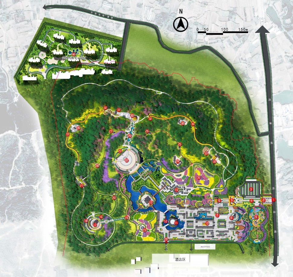 3、以入口服務區(qū)(龍之目)、明皇小鎮(zhèn)區(qū)(龍之心)、大明文化演藝區(qū)(龍之魂)、大明文化游覽區(qū)(龍之脈)、明皇文化社區(qū)(龍之居)六大功能分區(qū)布局整個文化園,將大明文化融入到每處景觀規(guī)劃中。