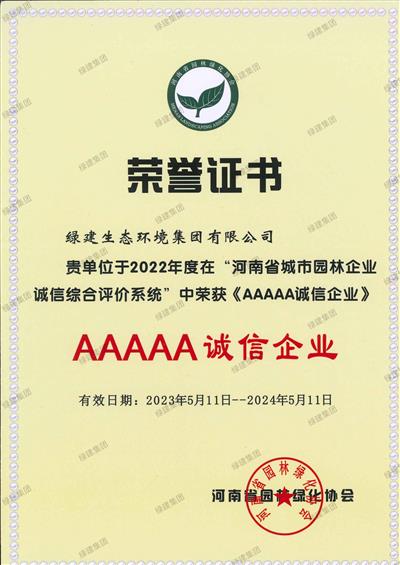 河南省園林綠化協會5A證書2023.5-2024.5