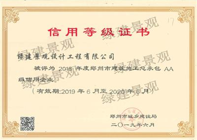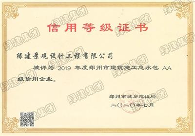 2019年度鄭州市建筑施工總承包AA級信用企業