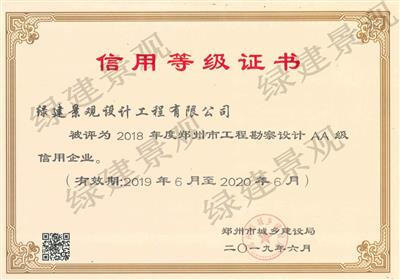 2018年度鄭州市工程勘察設計AA級信用企業