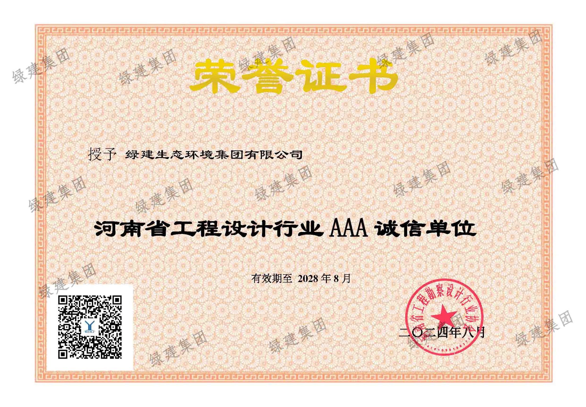 河南省工程設計行業AAA誠信單位