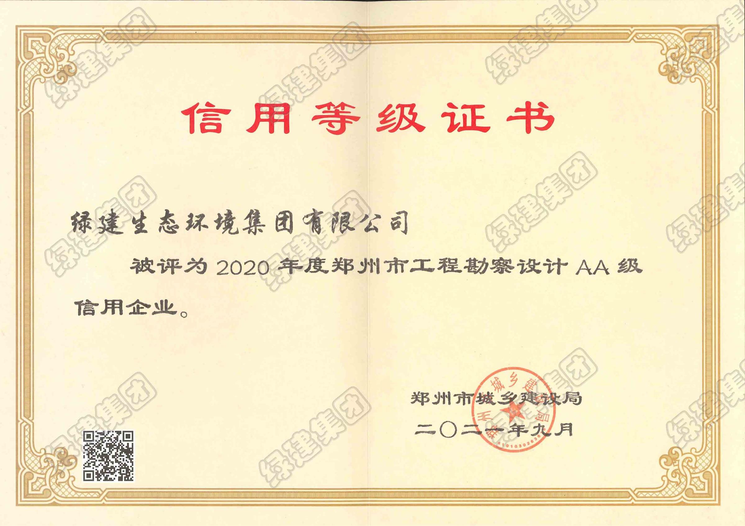2024年度鄭州市勘察設計AAA級信用企業(yè)