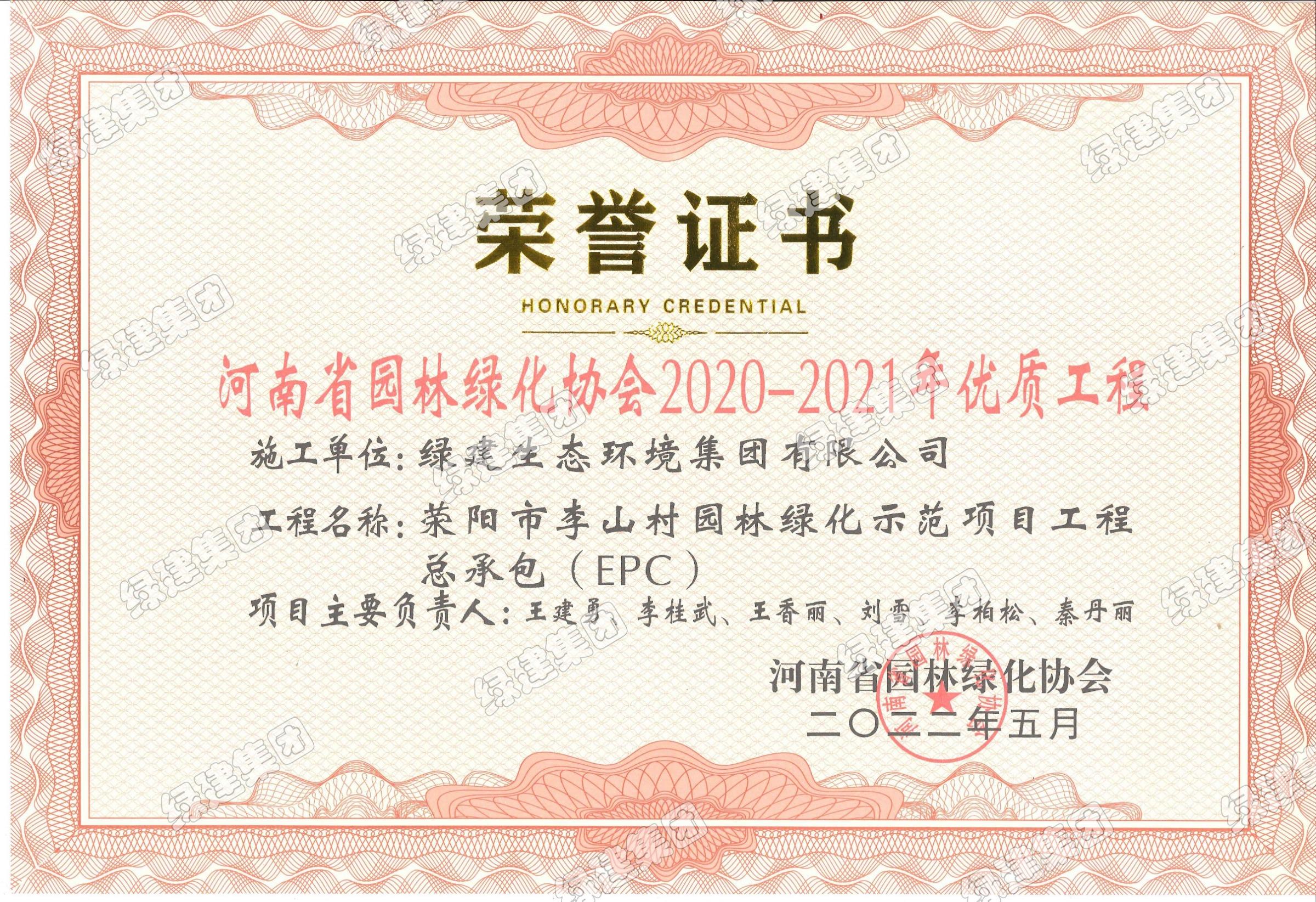 滎陽市李山村園林綠化示范項目工程總承包(EPC)——河南省園林綠化協會2020-2021年優質工程